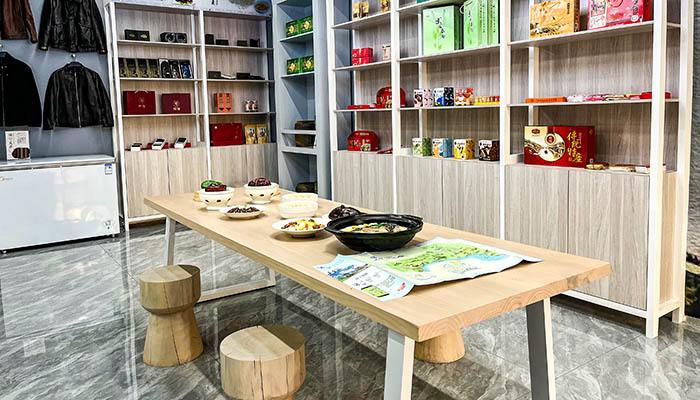 為進(jìn)一步展現(xiàn)海寧鄉(xiāng)村振興,共同富裕成效,推動(dòng)海寧文旅產(chǎn)業(yè)產(chǎn)教融合發(fā)展,在市文旅體局的支持下,利用閑置廠房,在培訓(xùn)中心旁創(chuàng)新打造“潮禮匯”海寧文旅特色展銷館。