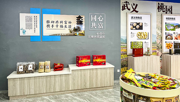 展銷館分為游在海寧、吃在海寧、情在海寧、購在海寧4大特色展區(qū)及山海協(xié)作特產(chǎn)區(qū)、同心共富特產(chǎn)區(qū)、共富鹽官特產(chǎn)區(qū),共7大展銷專區(qū),集人文宣傳、產(chǎn)品展示、產(chǎn)品銷售于一體。展銷館自建成以來,受到社會(huì)各界高度肯定。目前,展銷館作為“以學(xué)院傳幫帶模式推廣復(fù)制鄉(xiāng)村共富經(jīng)驗(yàn)”海寧市共同富裕示范區(qū)建設(shè)試點(diǎn)的重要組成部分已被納入省級(jí)共同富裕儲(chǔ)備項(xiàng)目。